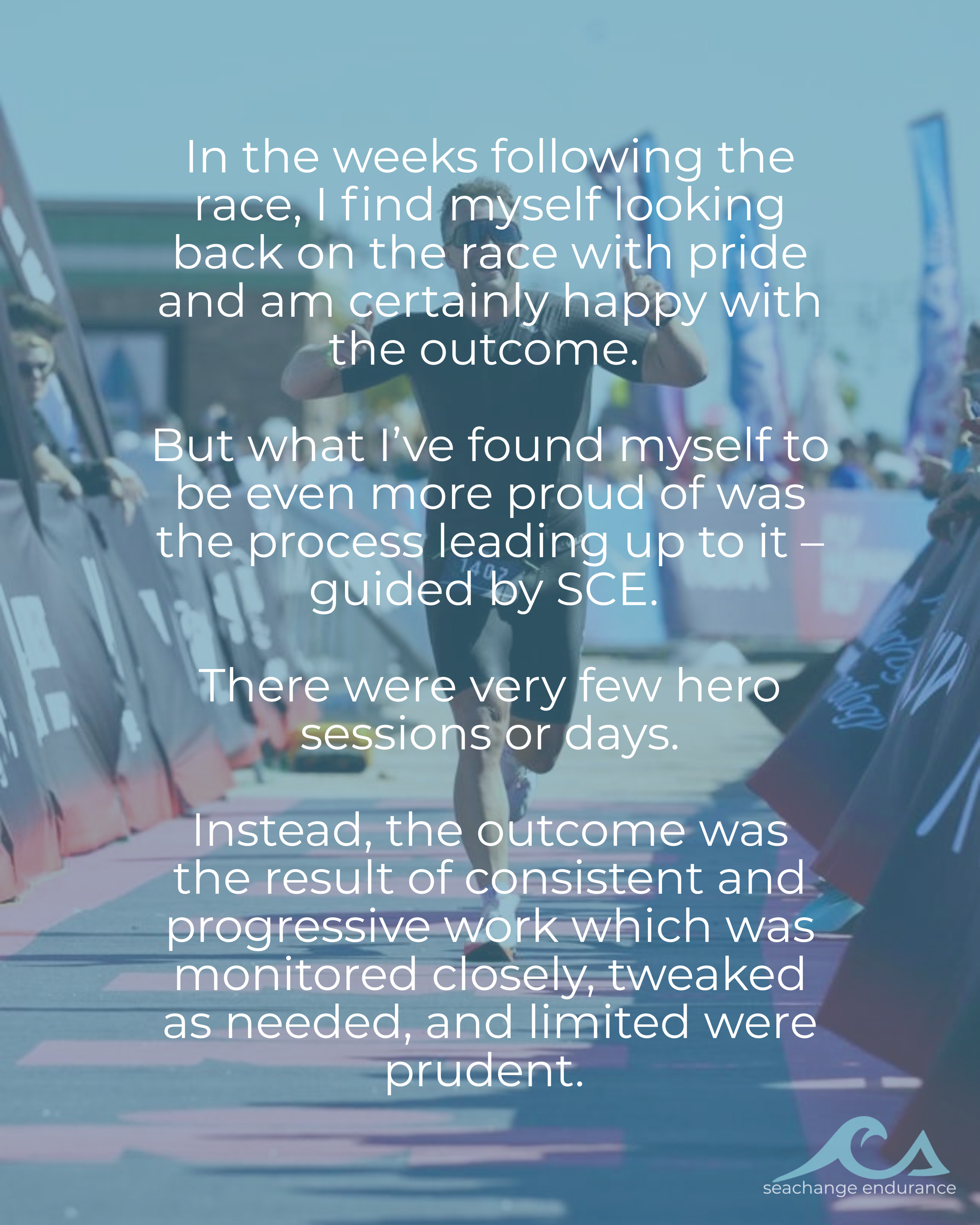 I lined up for the swim ready to attack from the time the gun, tried to remain calm and powerful in the swim, lay down good power on the bike, and keep the foot on the gas on the run.
